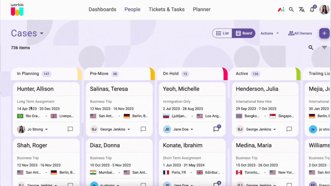Each column reflects a stage in your mobility process, making it easy to identify bottlenecks, optimise handoffs, and track how efficiently cases are moving through the pipeline.
