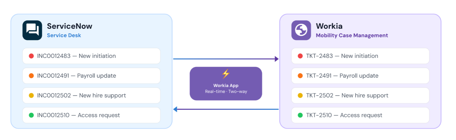 Workia will soon integrate with ServiceNow, allowing tickets and incidents to sync between Workia and ServiceNow.